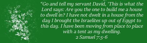 Go and tell my servant David, ‘This is what the Lord says. Are you the one to build me a house to dwell in? I have not dwelt in a house from the day I brought the Israelites up out of Egypt to this day. I have been moving from place to place with a tent as my dwelling.
